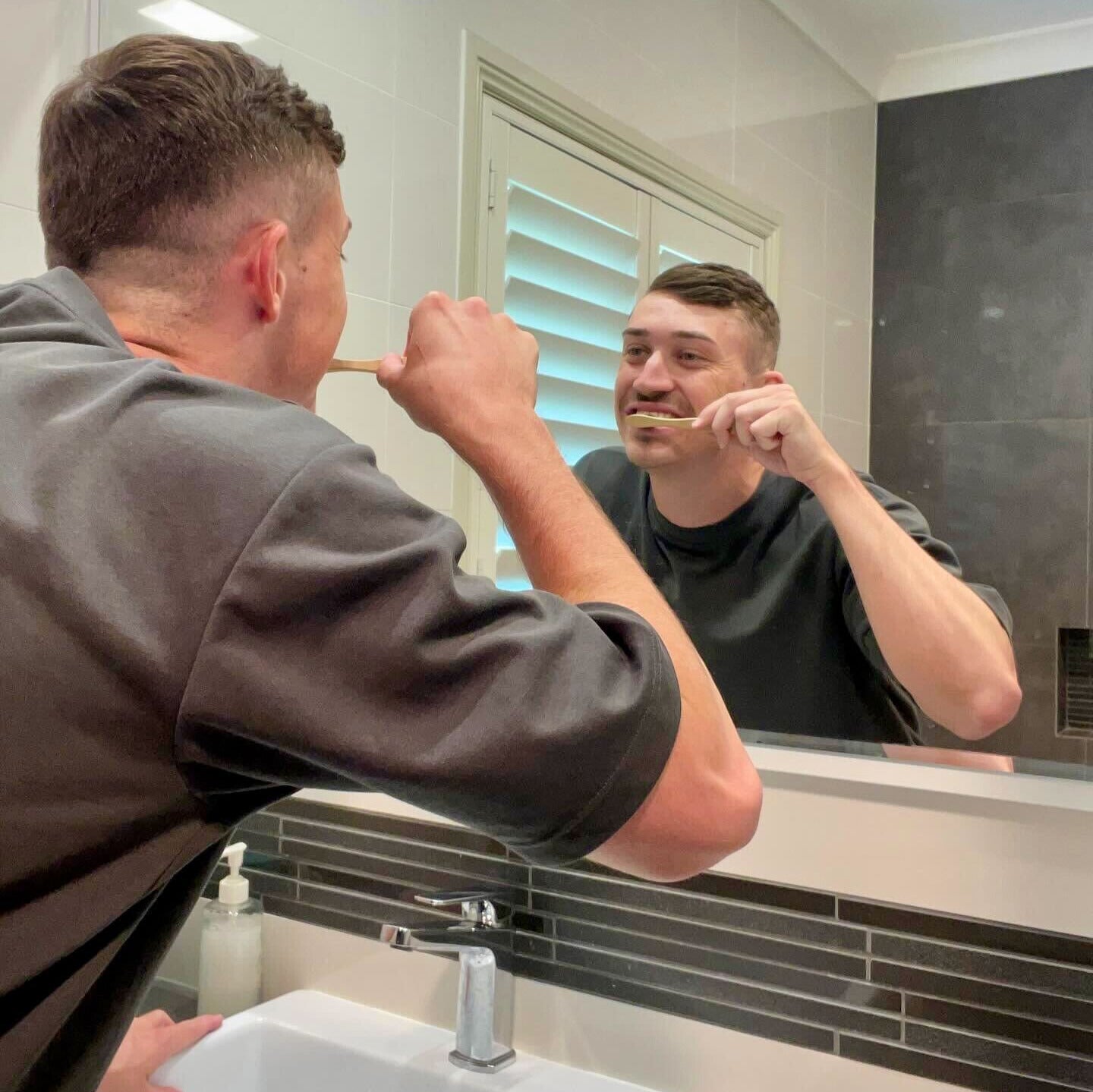 Use Oxford White's Brightening Serum along with a bamboo toothbrush, and brush your teeth for a duration of 2 minutes.